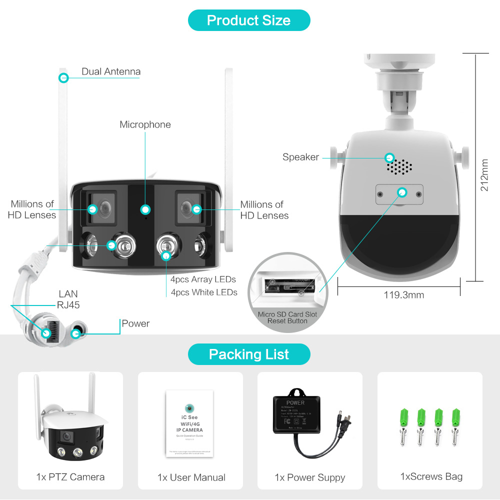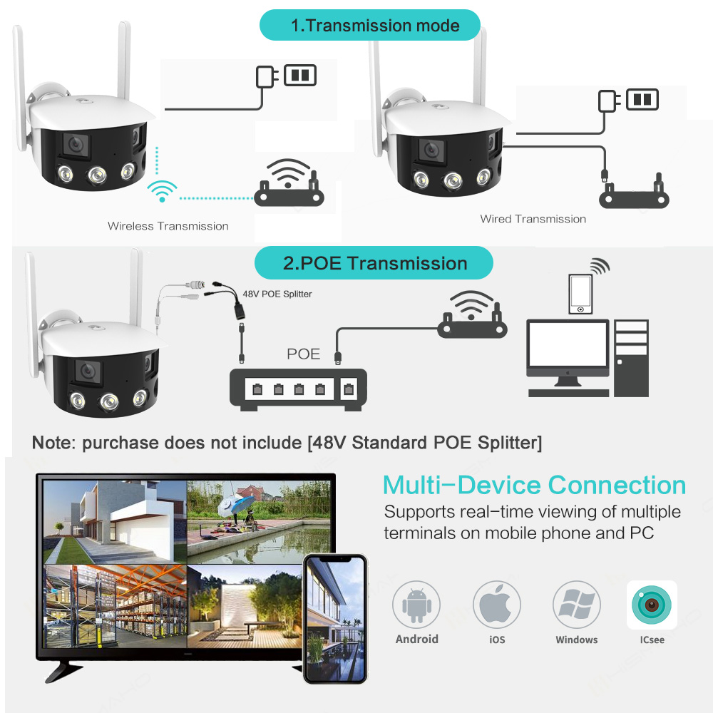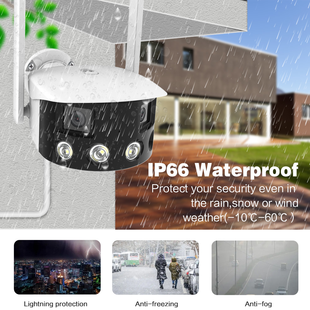 Outdoor 4K 4MP 180° Ultra Wide View Angle Panoramic WIFI Dual Lens Fixed IP Camera AI Human Detection Security Cam
