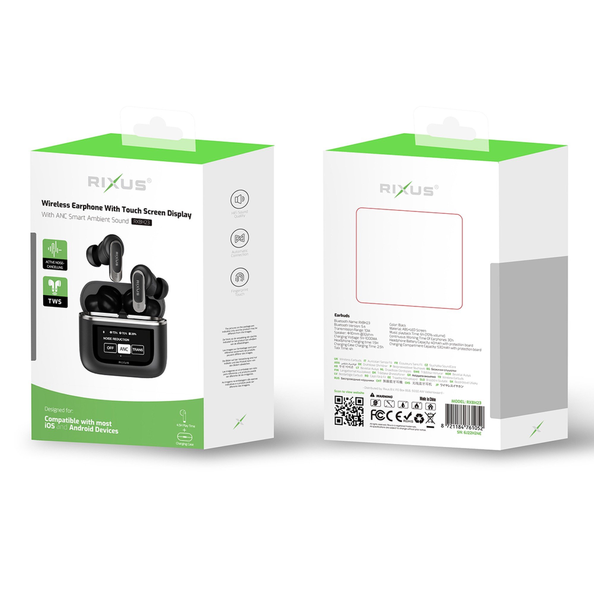 Rixus Wireless Travel Pro hörlurar med pekskärm Svart