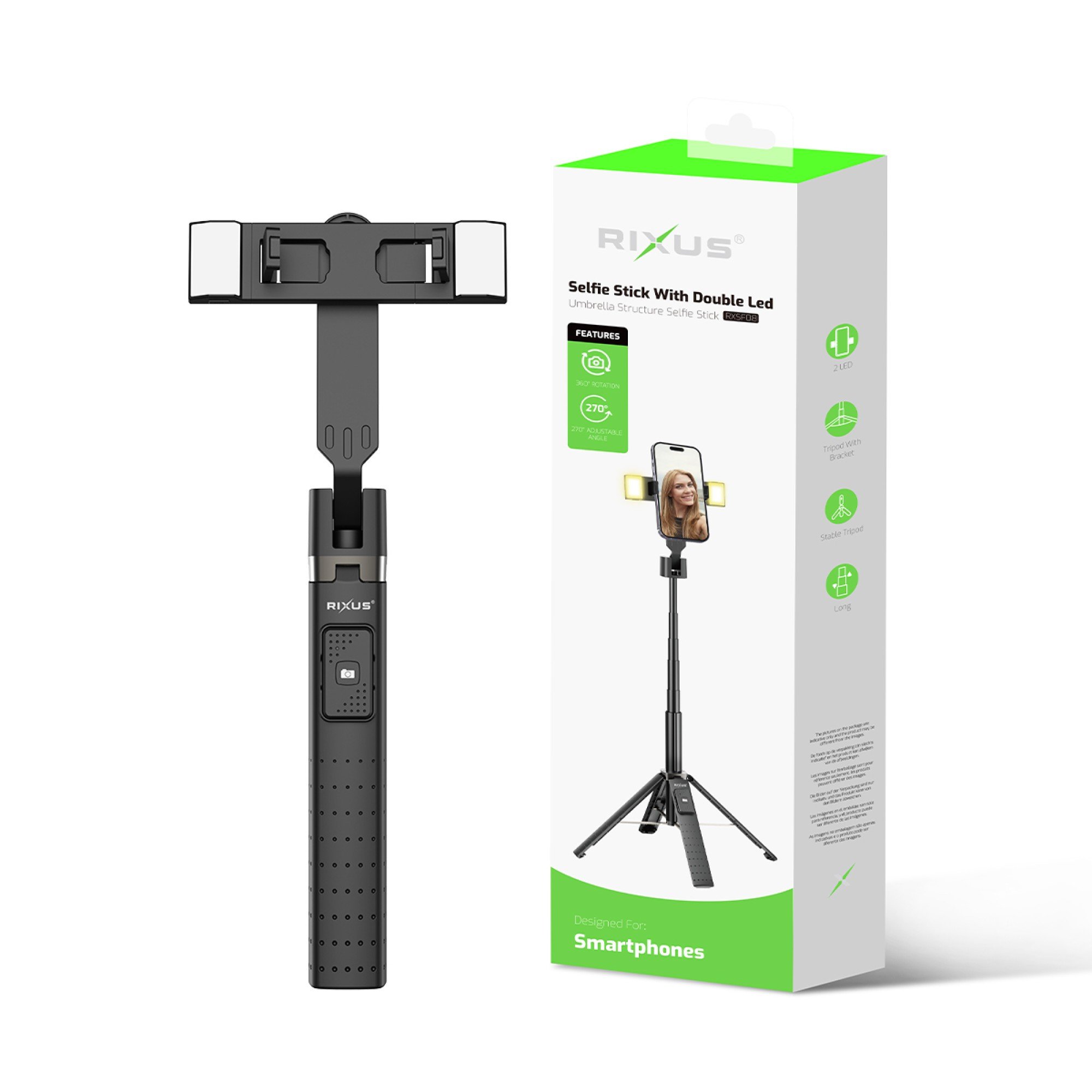 Aluminium Högkvalitativ Selfie Stativ med dubbelt LED-ljus
