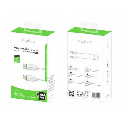 Rixus Data Sync och Snellaadkabel Type-C till Lightning 2 Meter RX2023