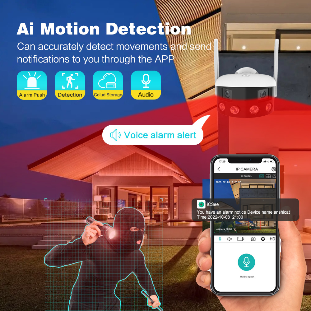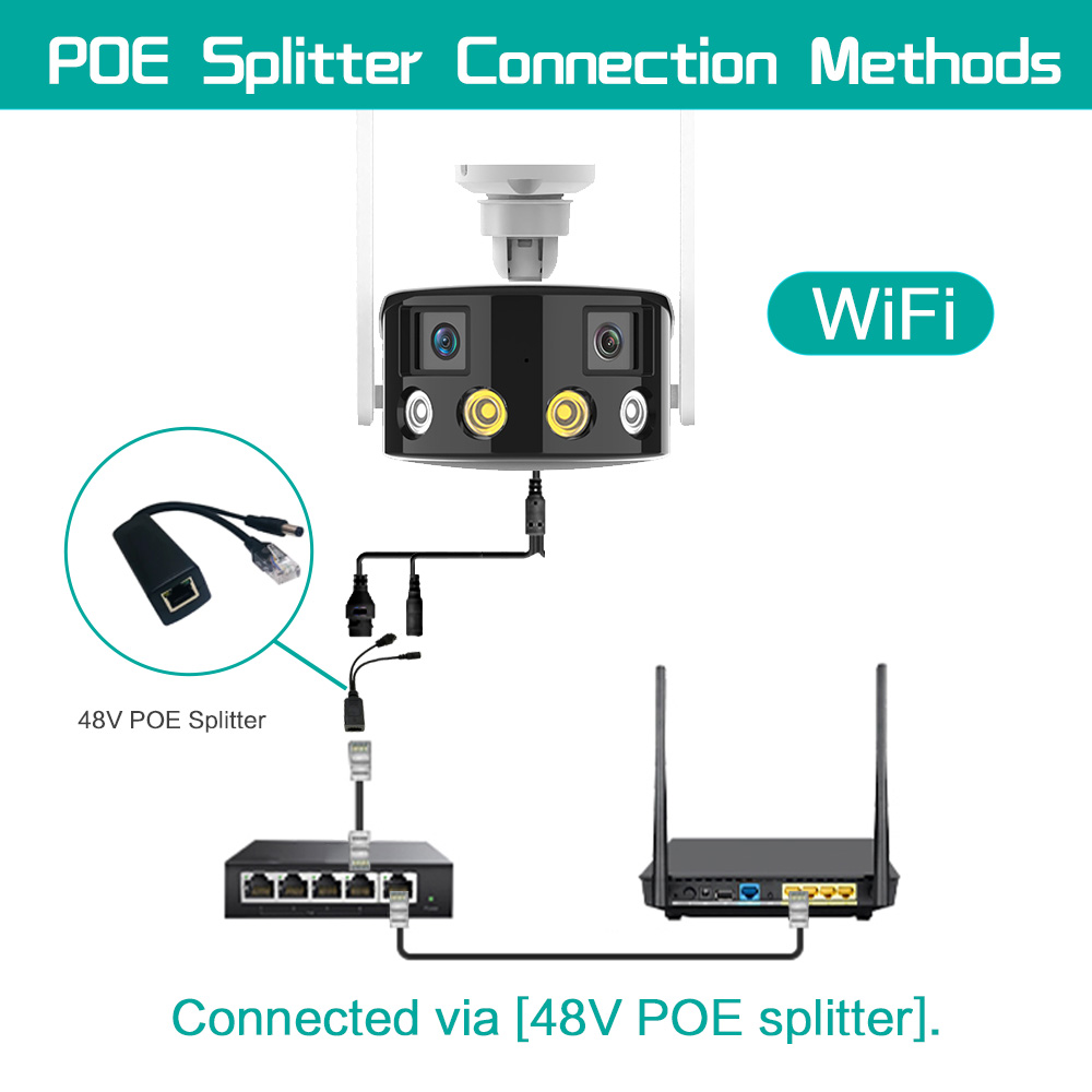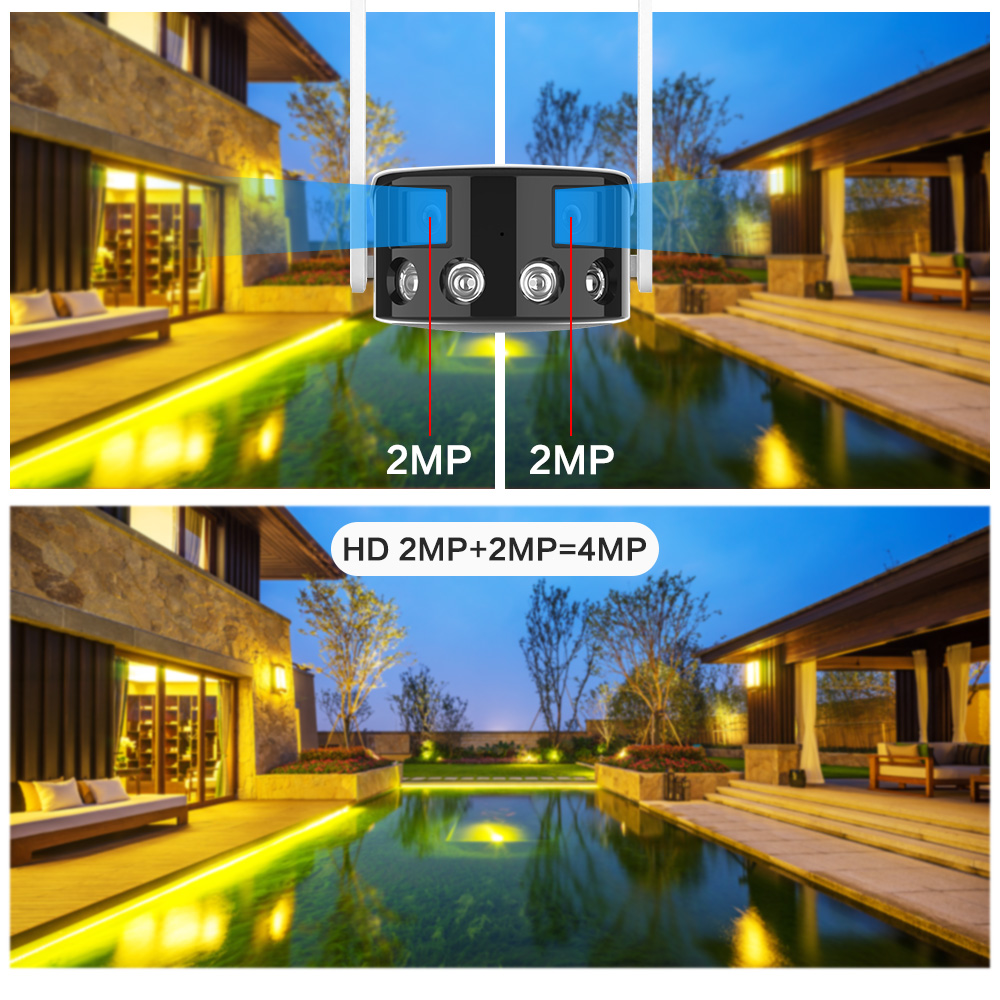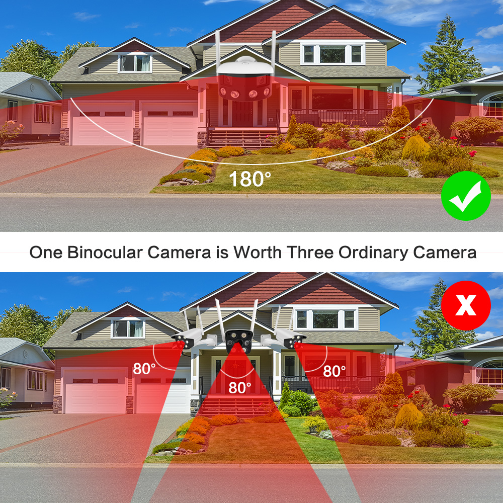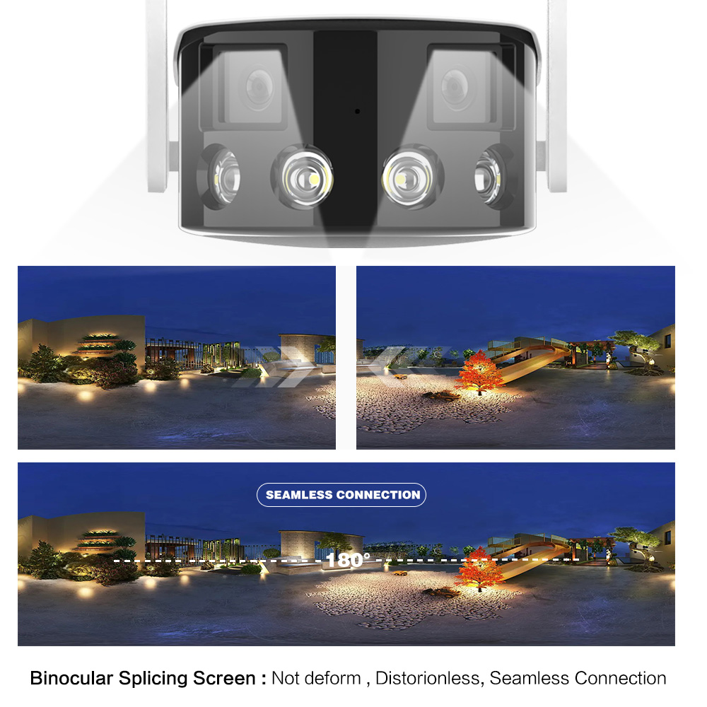 Outdoor 4K 4MP 180° Ultra Wide View Angle Panoramic WIFI Dual Lens Fixed IP Camera AI Human Detection Security Cam