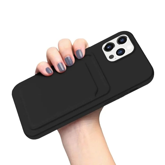 Detta fodral kommer med en inbyggd korthållare som är placerad på baksidan av fodralet. Korthållaren rymmer upp till 2-3 kort.
