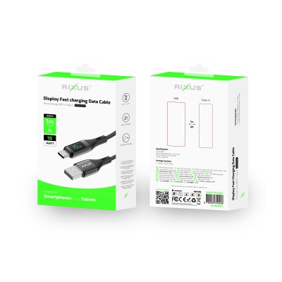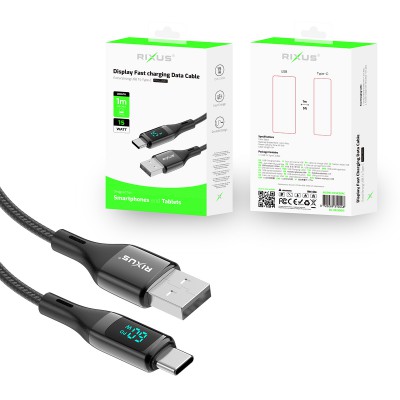 Rixus RXUC28AC Flätad USB till USB-C-kabel med LED-skärm 1m Nylon/svart